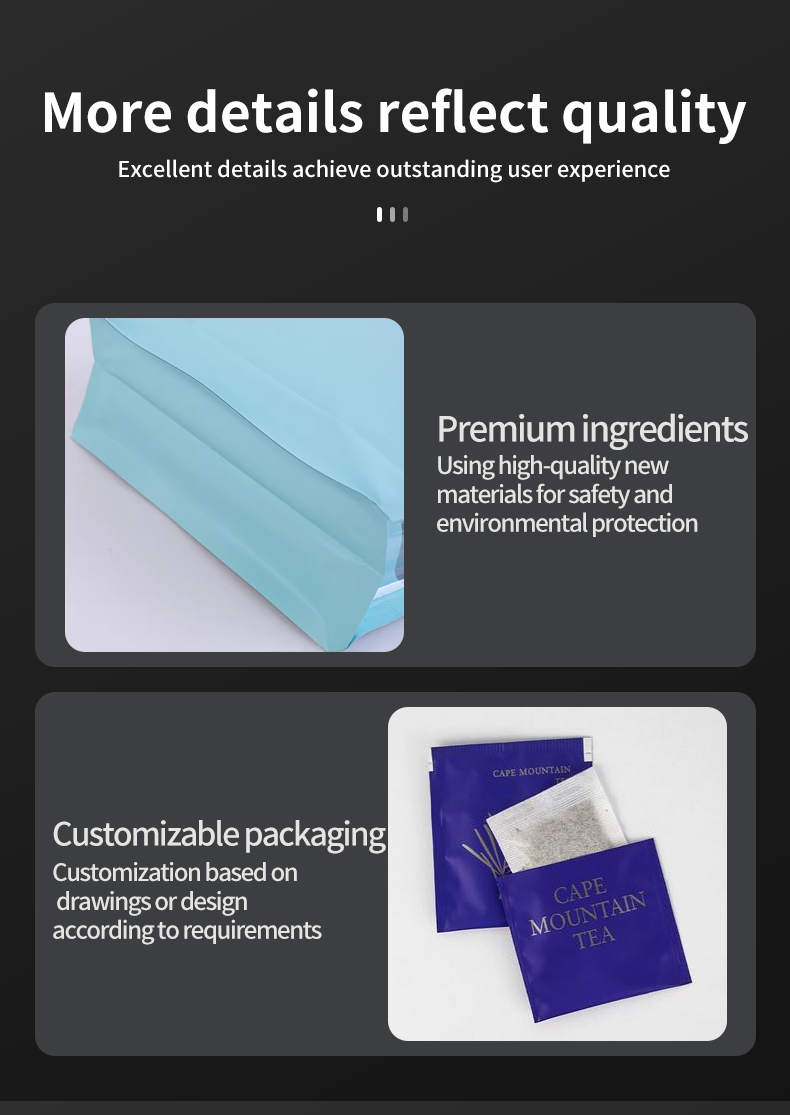 < > Tea Packaging Bag Material/Package/Colour/Logo: Customized MOQ: 1000pcs Send Inquiry Description Detail: Send Inquiry